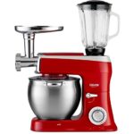 DMS Robot de cocina 3 en 1, amasadora de 9 litros, cuenco de acero inoxidable, protección contra salpicaduras, picadora de hielo, picadora de carne, amasadora, 2200 W, color negro KMFB-2200 (rojo)