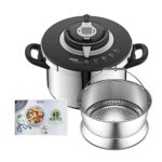 – Seguridad probada por TÜV: liberación automática de vapor y protección contra la presión residual. Funcionamiento sencillo con regulador de cocción de 2 niveles (nivel suave/intensivo: 110°C/ 119°C). Asa de la tapa extraíble para facilitar la limpieza